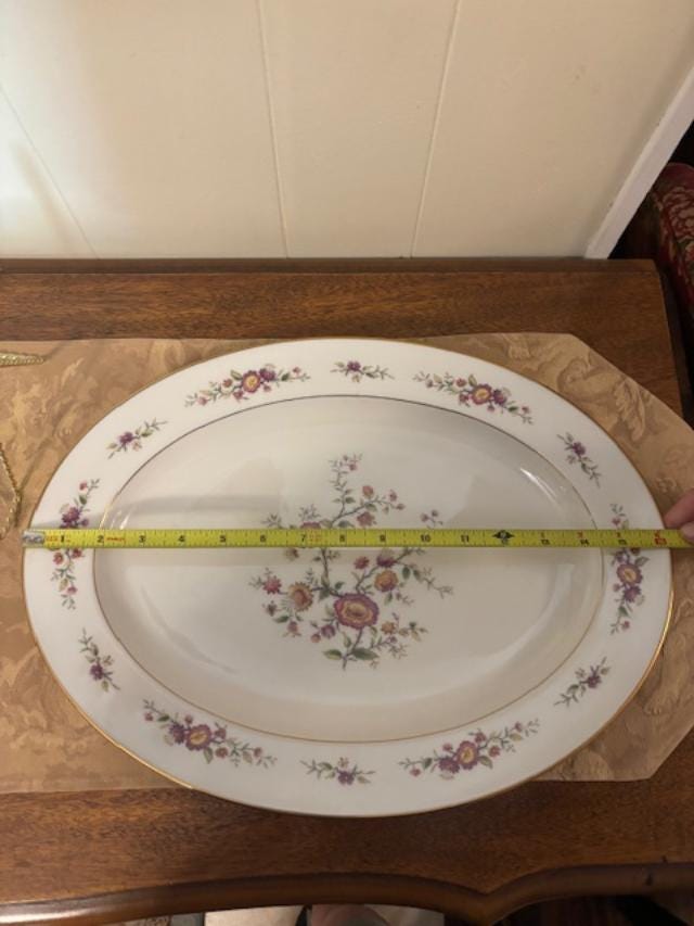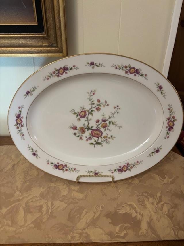 Piece is in excellent used condition - has hardly been used, with no chips, cracks or scratches. It is approximately 16 1/4" and is made by Noritake of Japan. The pattern is called Asian Song which was manufactured between 1972-1986. The pattern is an Asian Floral design with Gold Trim.