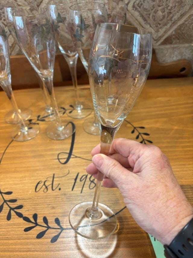 Eight (8) Wine Things Handcrafted Optical Grape 7 oz Tulip Shaped Champagne Glasses
