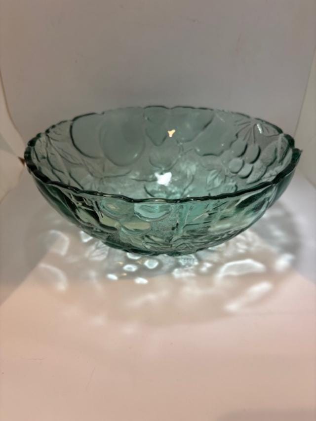 Libbey Orchard Fruit Green Glass Serving Bowl 9" Round