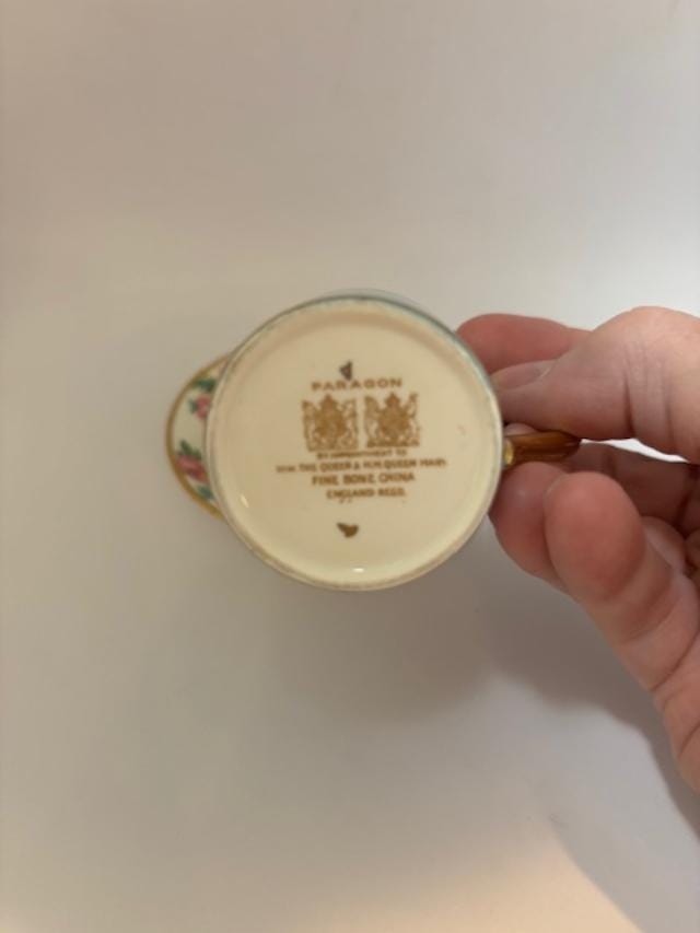 Vintage Paragon H.M. the Queen and H.M. Queen Mary Demitasse Cup and Saucer