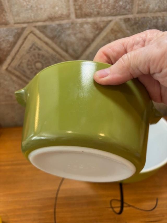 Vintage Set of Two (2) Pyrex Avocado Green Dishes - Casserole and Mixing Bowl