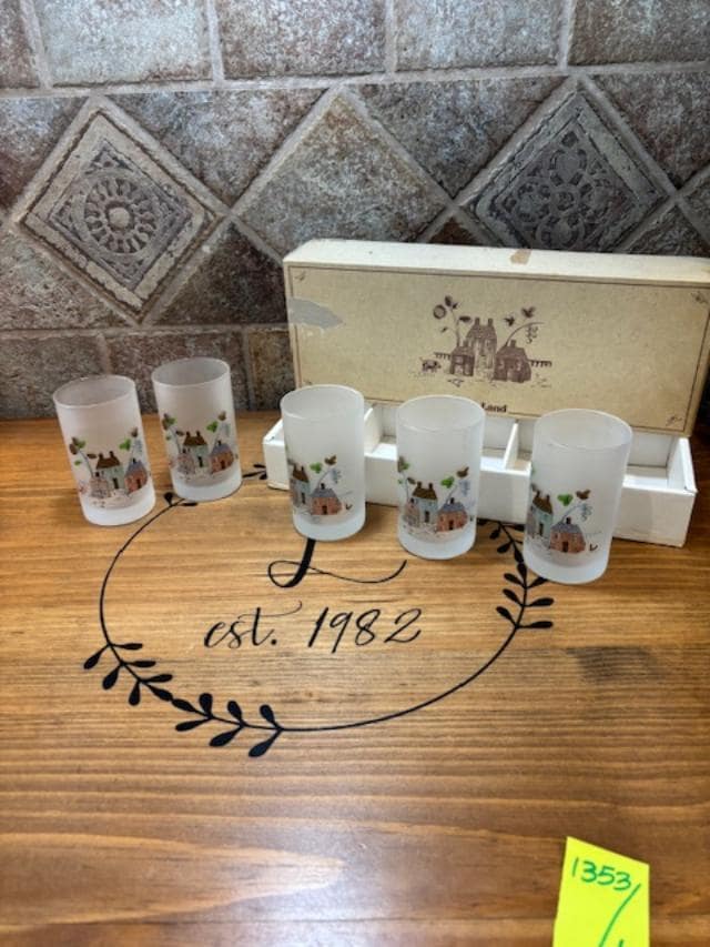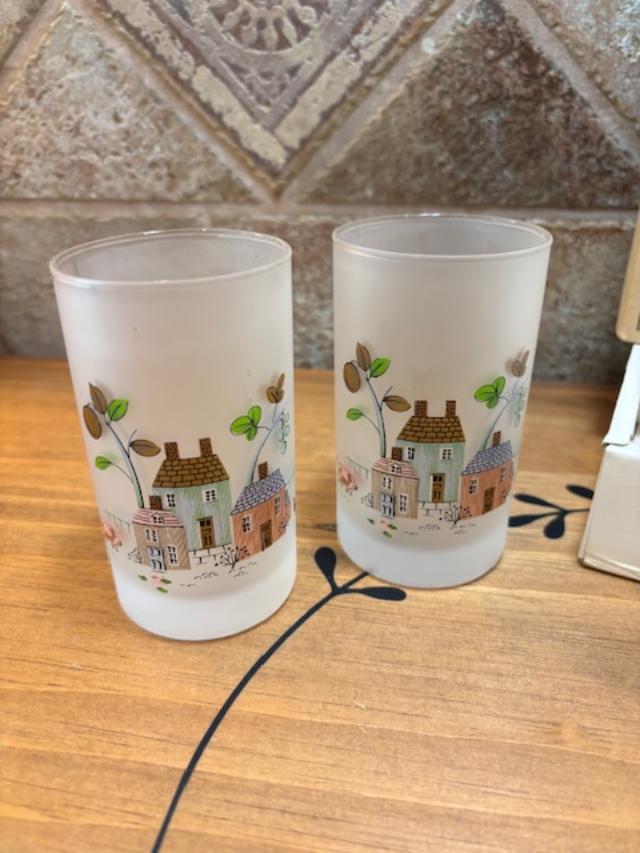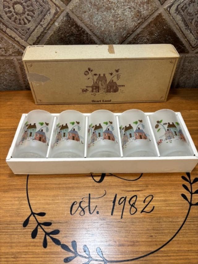 RARE Vintage Set of Five (5) Heartland Sasaki Glass Japan Frosted Tumblers IOB