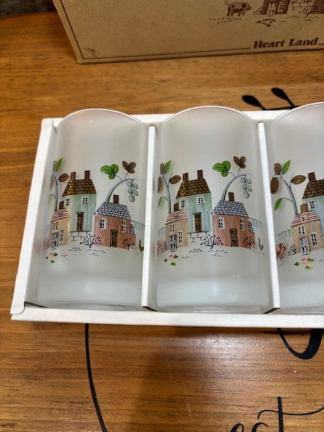 Each of the glasses are a frosted glass which is rare in the Heartland pattern. Great addition to your collection and set.