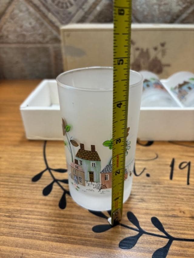 Each of these short tumblers are approximately 4 1/4" in height, 2 3/8" in diameter at the rim, and hold 8 ounces of your favorite beverage or drink. They are in the original box which has Sasaki Glass and M1221 on the side.